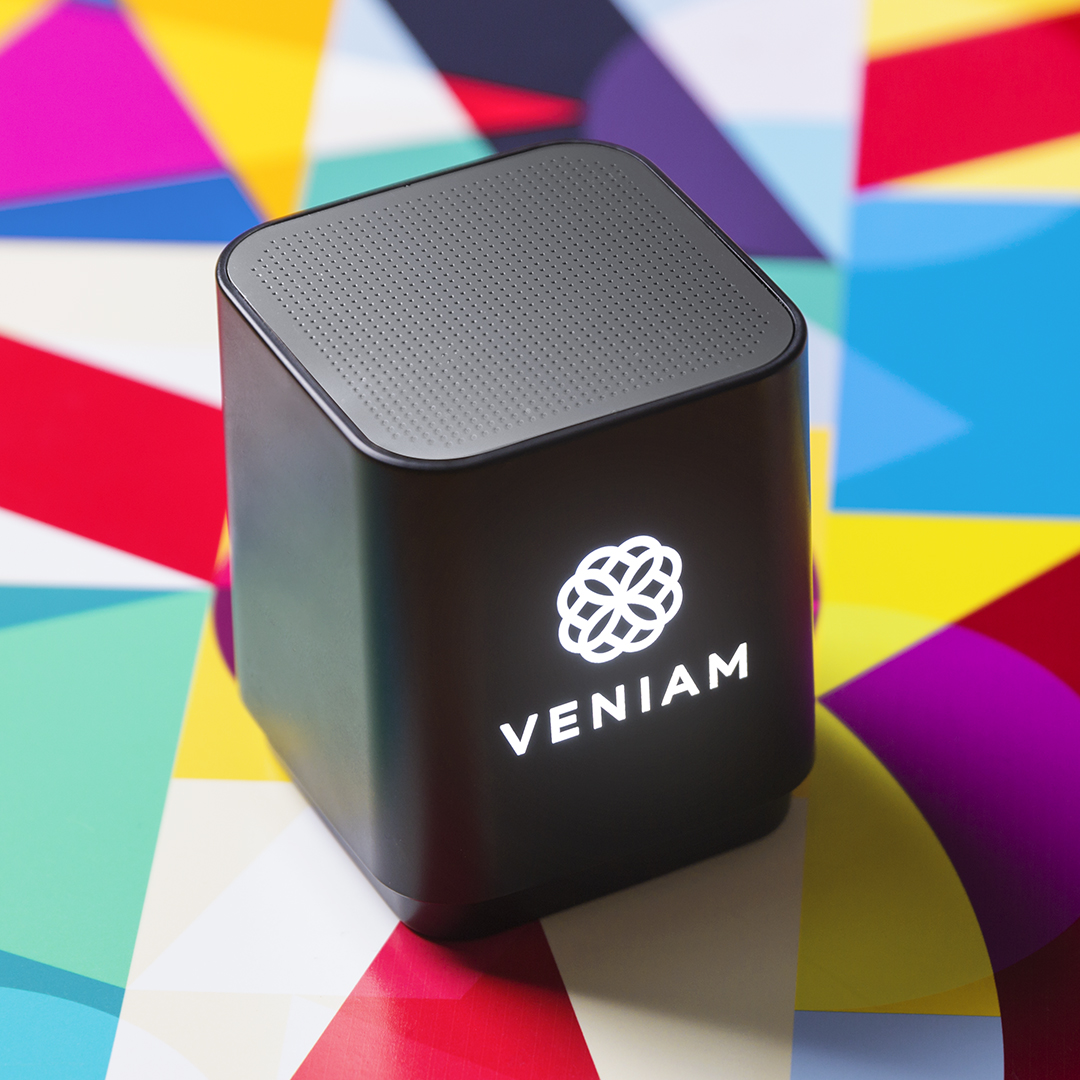 Altavoz con conexión Bluetooth, luz led interior y cuerpo especialmente diseñado para marcaje en láser, iluminando así el logotipo. Con 3W de potencia y función manos libres. Recargable mediante cable USB -incluido- y presentado en una atractiva caja de diseño.