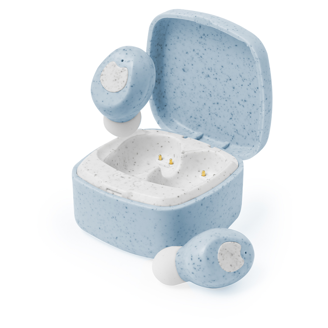 Auriculares intraurales fabricados en caña de trigo, con conexión Bluetooth 5.0. De diseño ergonómico, incluyen botón de control táctil integrado en el auricular, cada uno con una batería de 30 mAh. Base de carga a juego con batería de 200mAh y luz LED de estado de carga. Función manos libres y recargables, con cable Tipo C incluido. Presentados en estuche individual de lujo con tapa de bisagra y en caja de diseño kraft. Disponibles en variada gama de colores, combinando la caña de trigo en color natural con originales tonos. Incluido manual de instrucciones en español e inglés.La caña de trigo fomenta la utilización de materias primas naturales, reduciendo así las emisiones contaminantes.Fabricados conforme a los estándares RoHS y en cumplimiento con los siguientes requisitos de seguridad:Sistema de protección contra sobrecalentamiento.Sistema de protección contra sobrecarga.Sistema de bloqueo para evitar cortocircuitos.