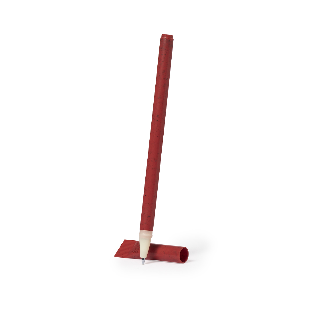 Bolígrafo con original capucha a juego y fabricado en caña de trigo y resistente ABS. Con tinta azul y disponible en variada gama de colores. Distintivo Wheat Straw en la capucha.La caña de trigo fomenta la utilización de materias primas naturales, reduciendo así las emisiones contaminantes.