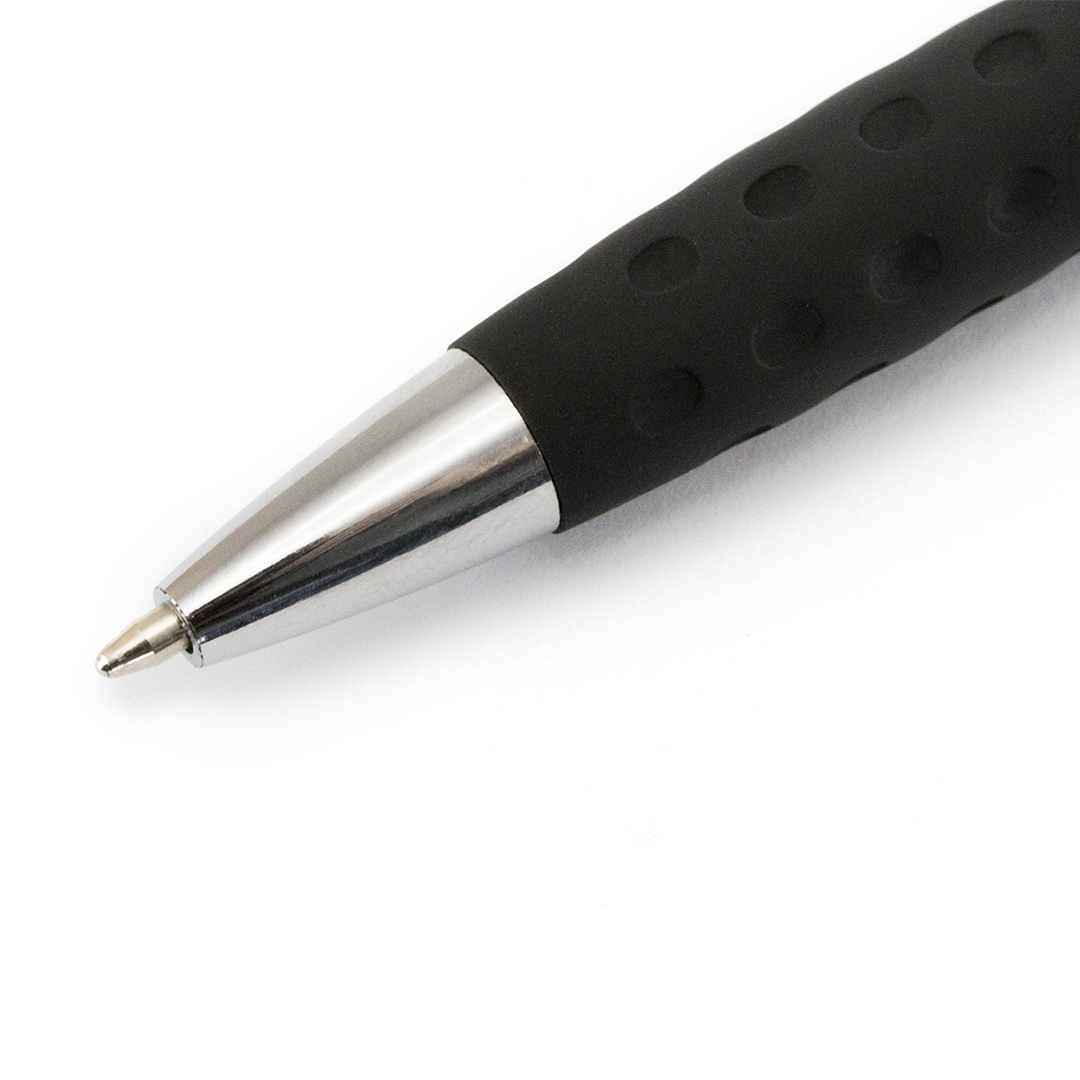 Bolígrafo puntero de mecanismo giratorio de elegante diseño bicolor con accesorios en color plateado brillante y cuerpo de suave acabado en llamativos colores metalizados brillantes. Con clip metálico y anilla a juego. Suave empuñadura de original diseño y tinta azul.