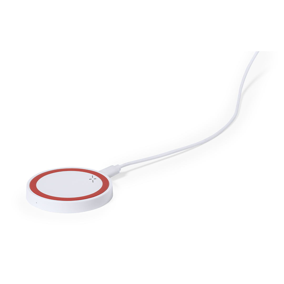 Cargador inalámbrico circular de diseño bicolor. Con base antideslizante e indicador LED de estado de carga. Compatible con smartphones con tecnología de carga inalámbrica y presentado en atractiva caja de diseño.
