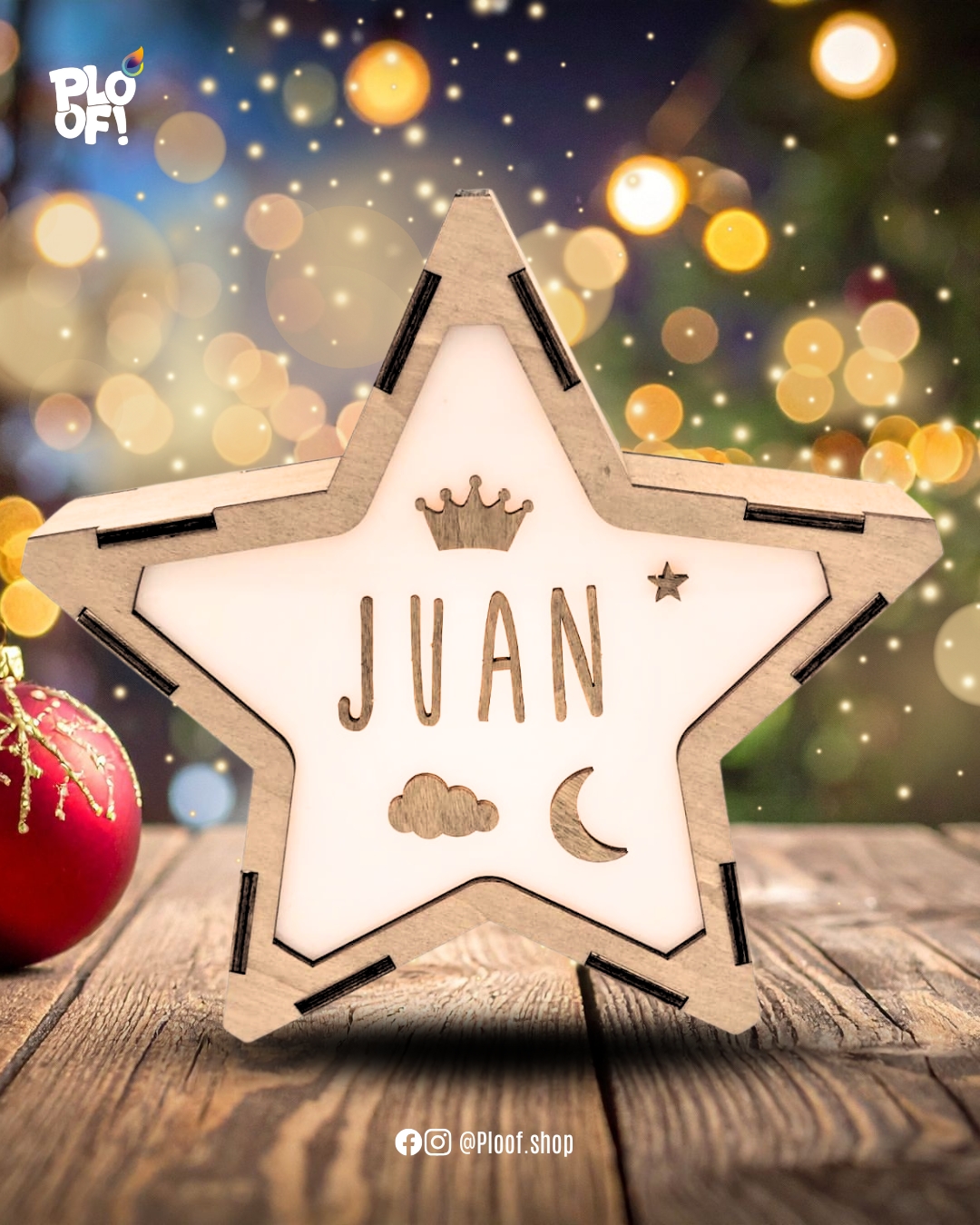 Nuestra Lámpara Estrella Personalizada está diseñada para crear un ambiente cálido, mágico y acogedor en cualquier habitación. Fabricada con madera natural y frente acrílico iluminado, proyecta una luz suave perfecta para la noche.