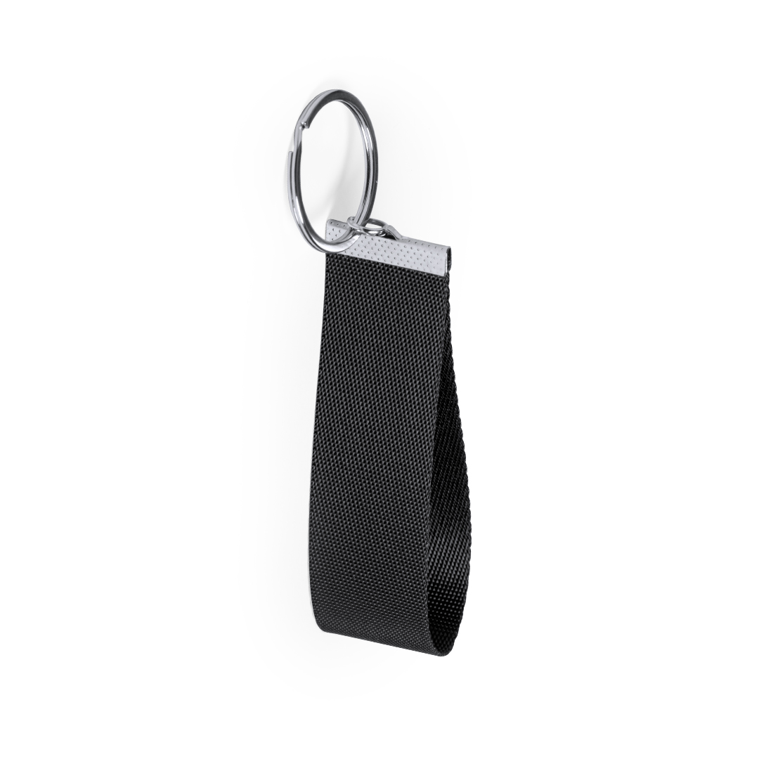 Llavero en resistente poliéster con detalles en metal. Disponible en variada gama de colores.