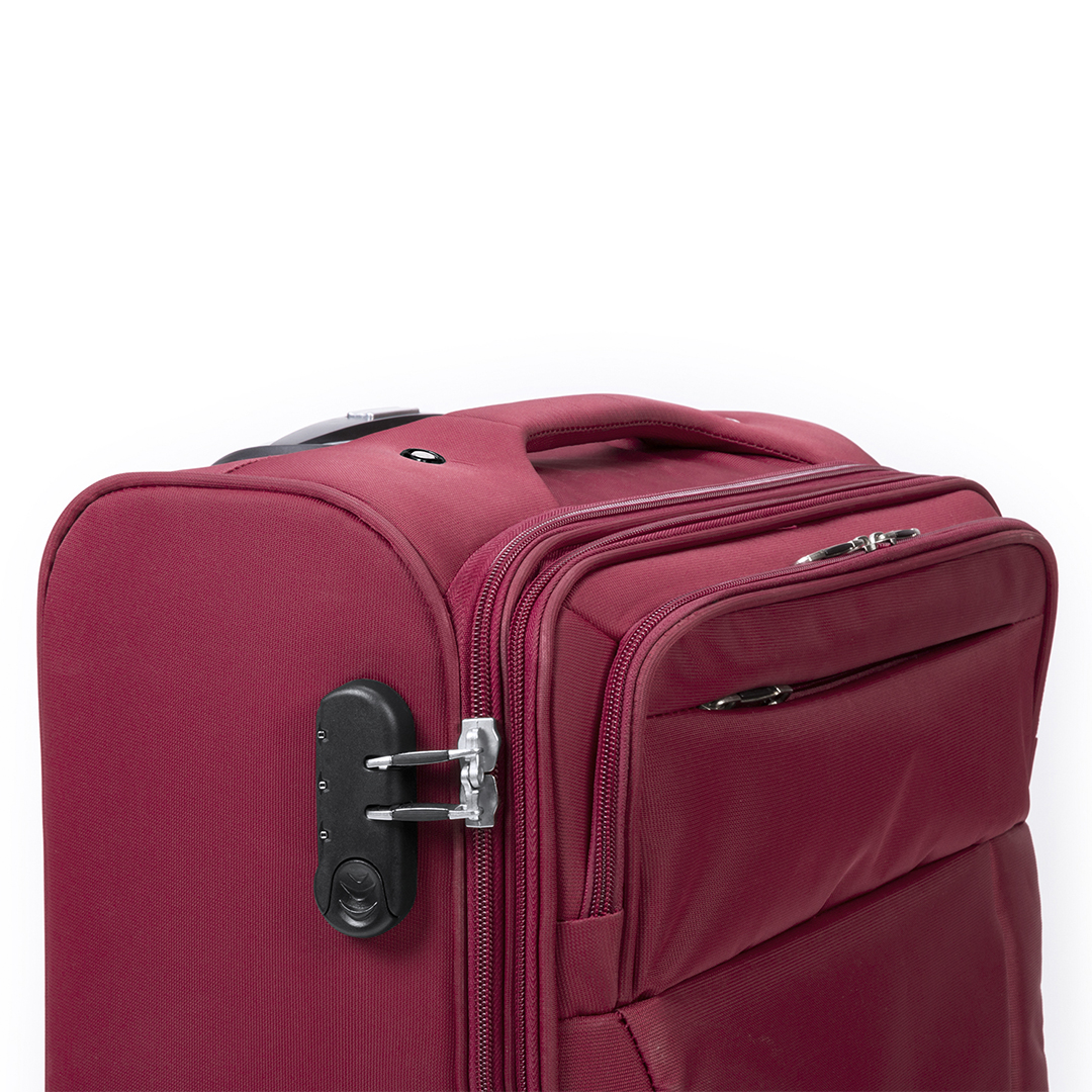 Trolley de negocios de apertura total con 4 ruedas telescópicas acabado en nylon. De sobrios colores, con asa exterior reforzada a juego y prácticos bolsillos en parte frontal. Con identificador, cierre de seguridad de combinación numérica y cremalleras a juego, incluye además compartimento interior acolchado para ordenador portátil de hasta 15 pulgadas y multitud de bolsillos interiores.
